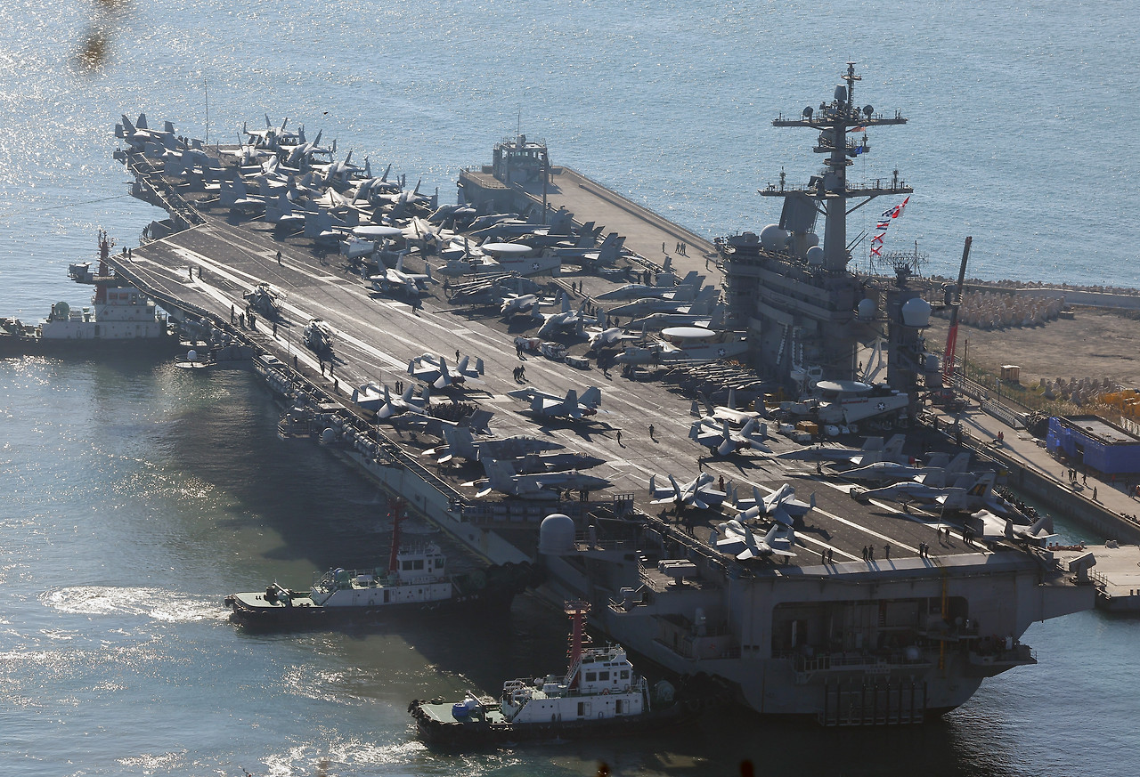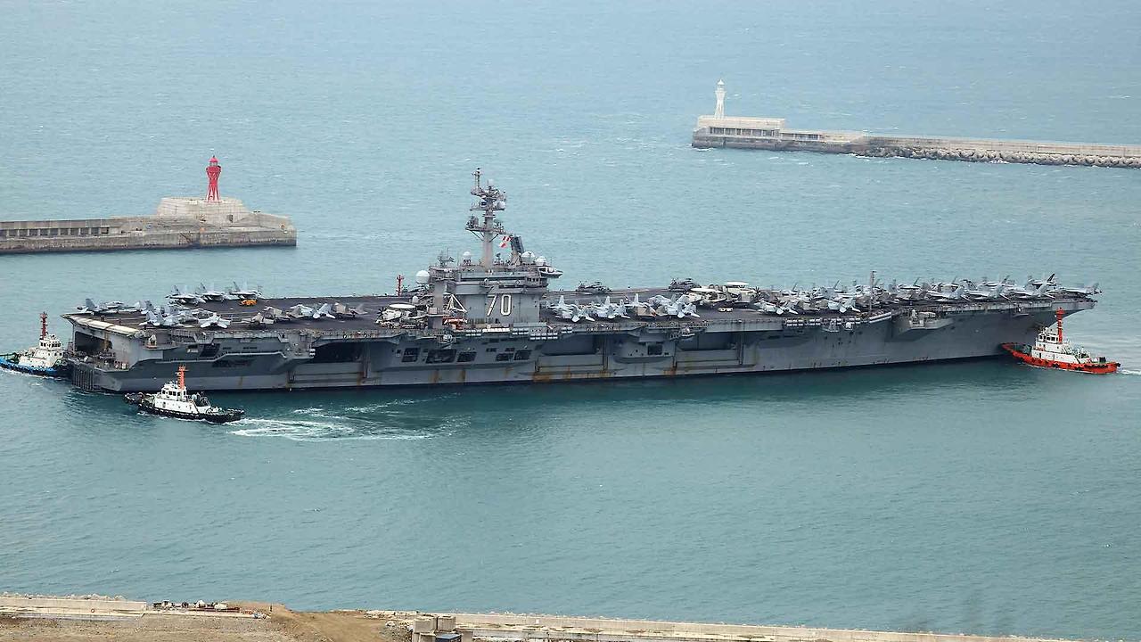 美 니미츠급 핵항모 칼빈슨함 부산 입항
