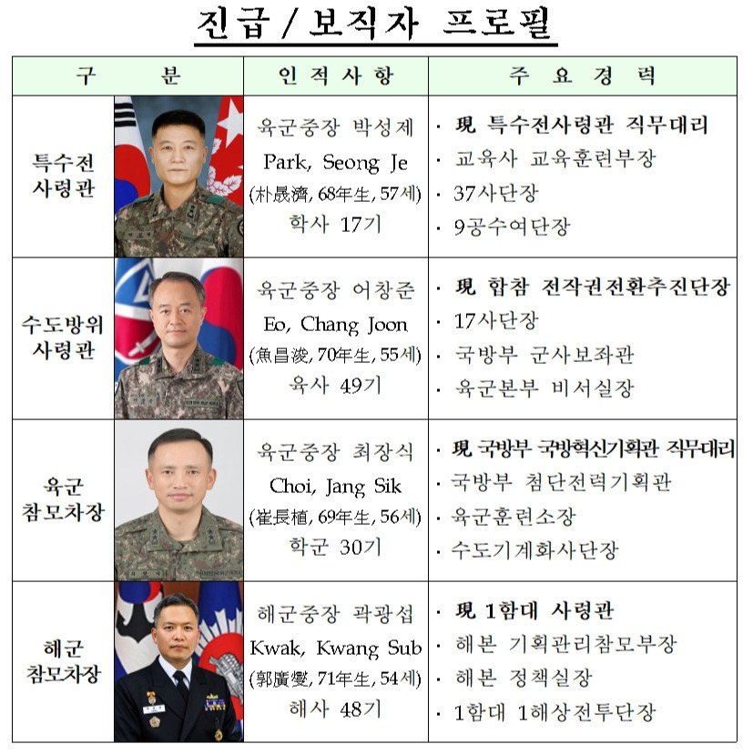 군 장군 인사 발표 공군 육군 중장 진급자 명단 해군 장성 진급인사 발표 명단, 프로필