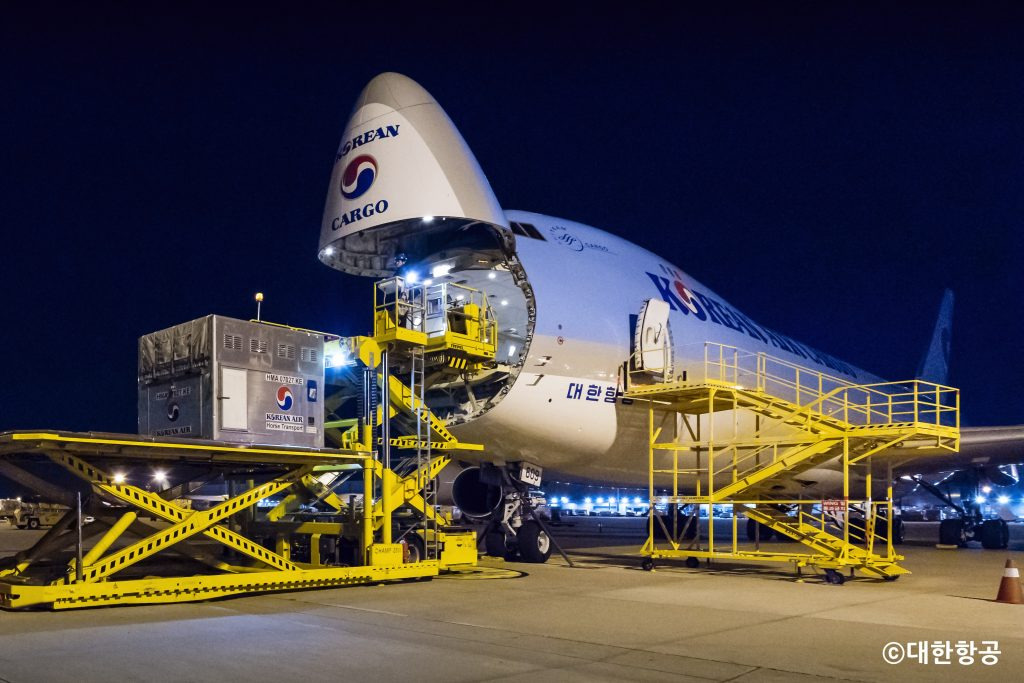 대한항공의 보잉 747-400F 화물기는 해외 도입 물자를 수송하는 데 중요한 역할을 했습니다. 이 항공기는 김해를 이륙하여 대구 기지로 향했고, 대구에서 하역된 물자는 군용 화물 팔레트에 재포장된 후, 공군 수송기 C-130에 다시 적재되었습니다. 이후, 이 물자는 서산 공군기지로 연계 수송되었습니다.