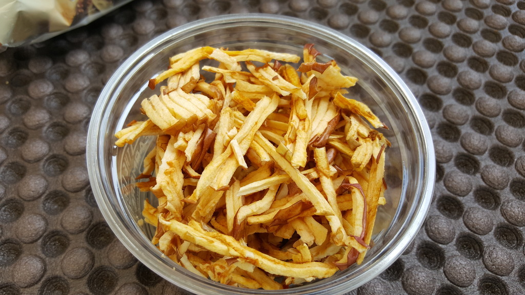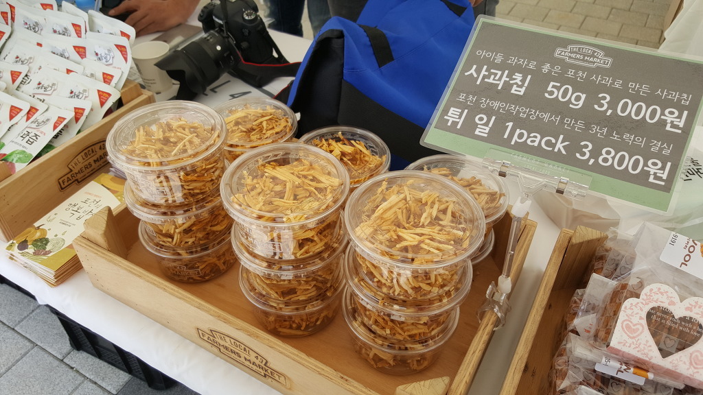 포천 로컬푸드 직매장 부스에 들렀더니 사과칩을 50g에 3천 원에 팔더군요.