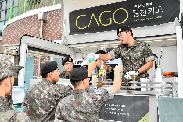 군인, 중년 남성, 따뜻한 마음, 커피 선물, 농다리 졸음쉼터, 육군훈련소, 감사, 배려, 군부대, 제네시스 차주