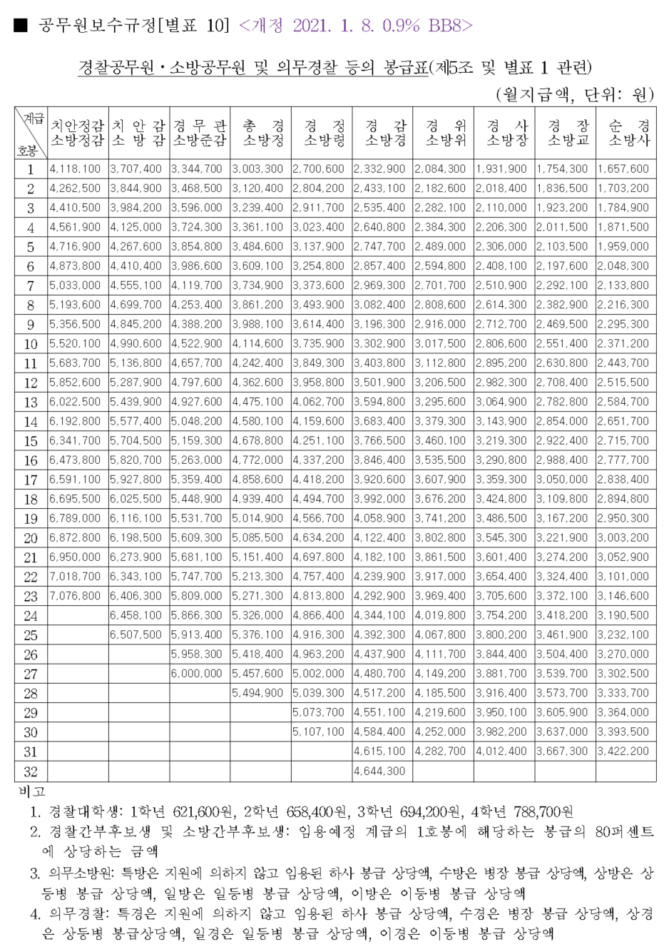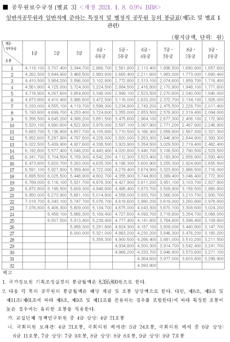 지금 언론에서 떠도는 자료는 제 아들이 임의로 제작한 2021년 공무원 봉급 인상률 0.9% 가지고 계산한 예상표가 도용되어 떠돌고 있더군요