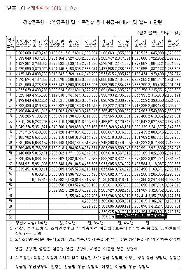 2018 경찰공무원 봉급표
