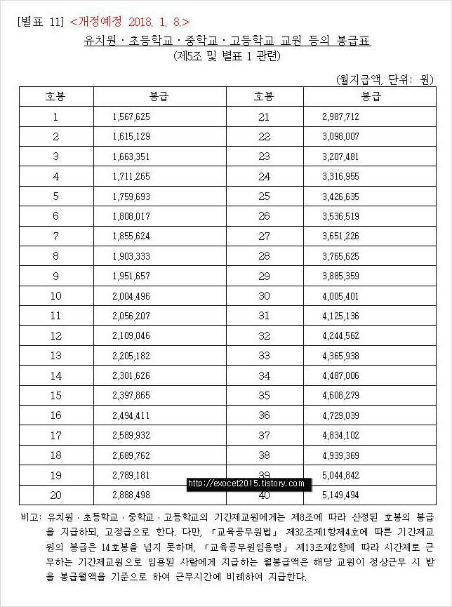2018 교육공무원 봉급표