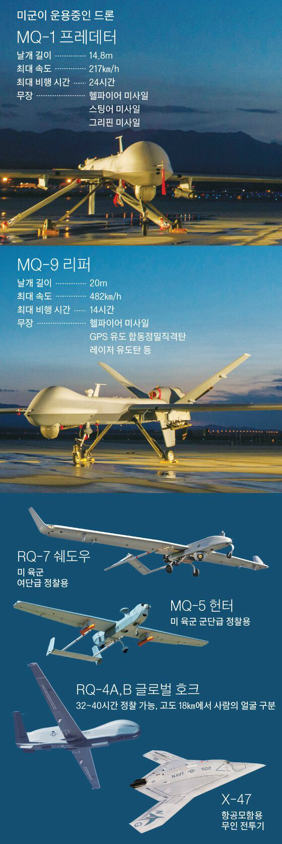 MQ-1 프레데터를 위시해서 MQ-9 리퍼 mq-7... 그리고 무인 스텔스 드론까지...