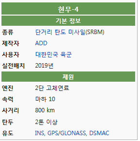 현무-4는 원래 최대 사거리 800㎞일 경우 2t 탄두를 탑재할 수 있게 설계됐지만 사거리를 줄일 경우 탄두중량을 늘릴 수 있다.