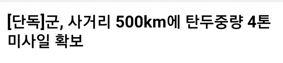 사거리를 300~500㎞로 줄일 경우 탄두 중량이 4~5t 이상으로 증가한다.
