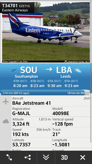 지난 비행기록도 살펴볼 수 있고 언제 이륙했는지 등에 대한 정보뿐만 아니라 비행기의 사진도 볼 수 있습니다.