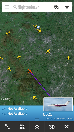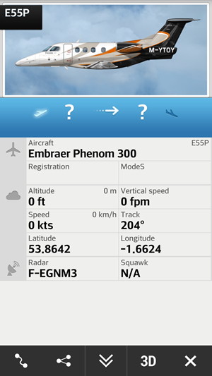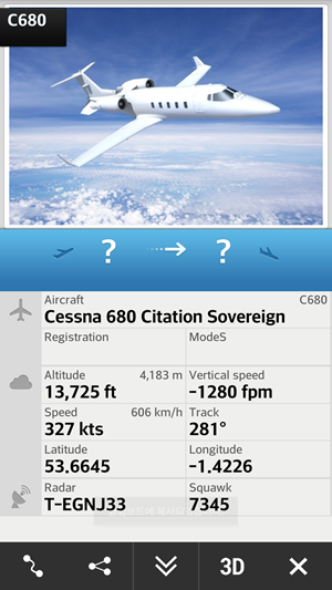 개인 소유의 기체인지, 출발지와 도착지에 대한 정보가 없다.