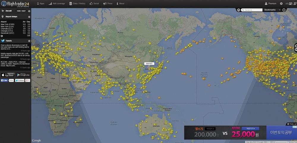스마트폰에서 실시간 비행기 추적이 가능한 앱 플라이트 레이더를 종종 들여다보곤 한다.