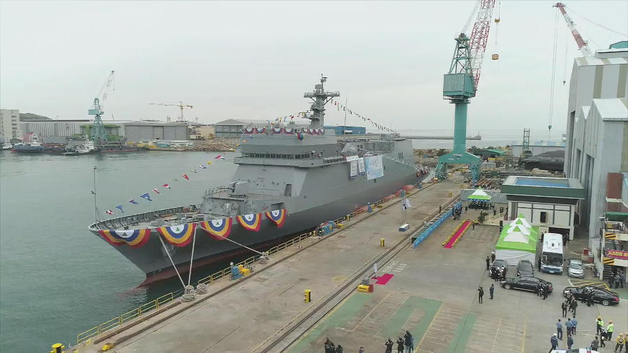 또한 후미에 다수의 한국형 수직 발사 시스템(K-VLS)을 위한 "공간 제공"이 있습니다(단, 선박에는 VLS가 제공되지 않음). 배에는 채프 발사기, 어뢰 발사기, 전자전 시스템(ECM/ESM) 및 선체 장착 소나가 장착될 예정입니다. 그 외에도 경사로가 있는 선미 문을 통해 RHIB(Rigid-hulled inflatable boats)를 쉽게 진수하고 회수할 수 있습니다. 중형 헬리콥터를 수용할 수 있는 데크와 격납고도 있습니다.
