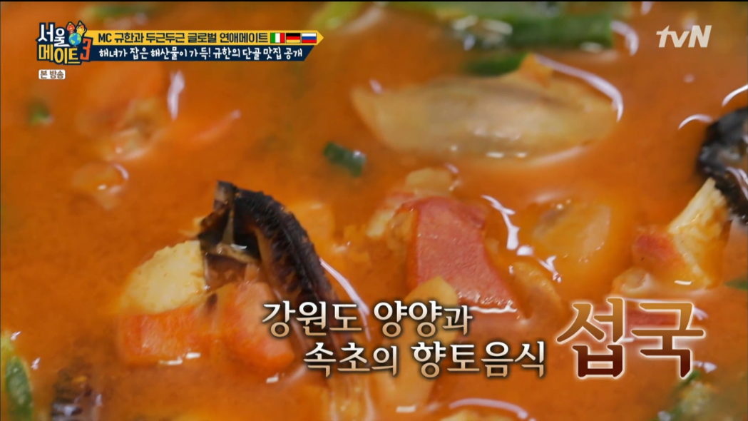 서울메이트 섭국은 청정 동해의 자연산 홍합인 섭으로 해장국을 끓인 것으로 규한이 가장 좋아하는 메뉴랍니다.