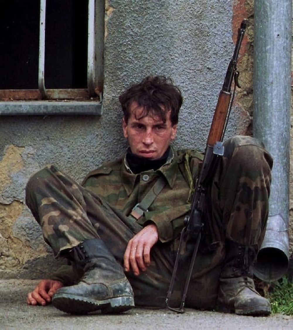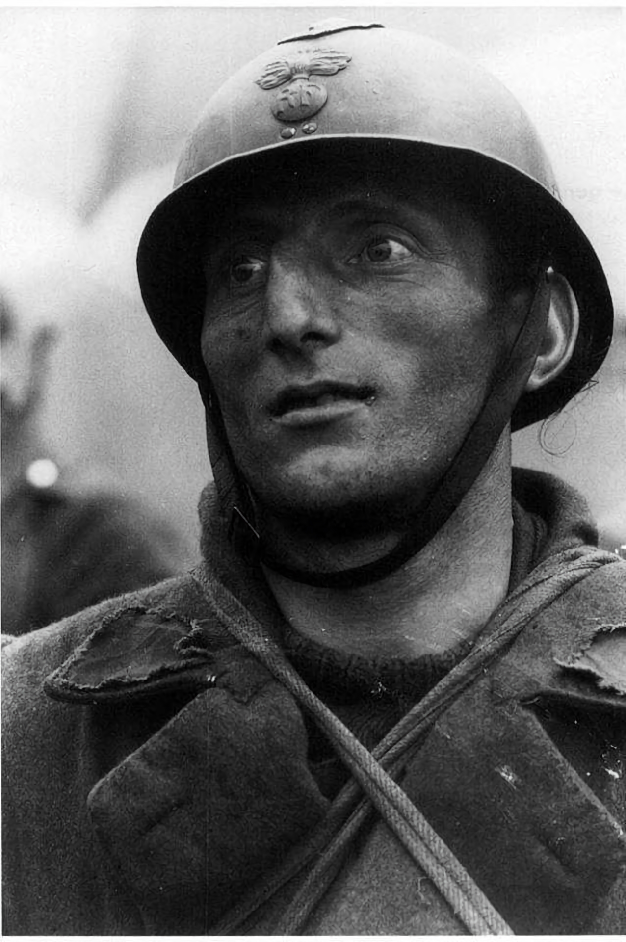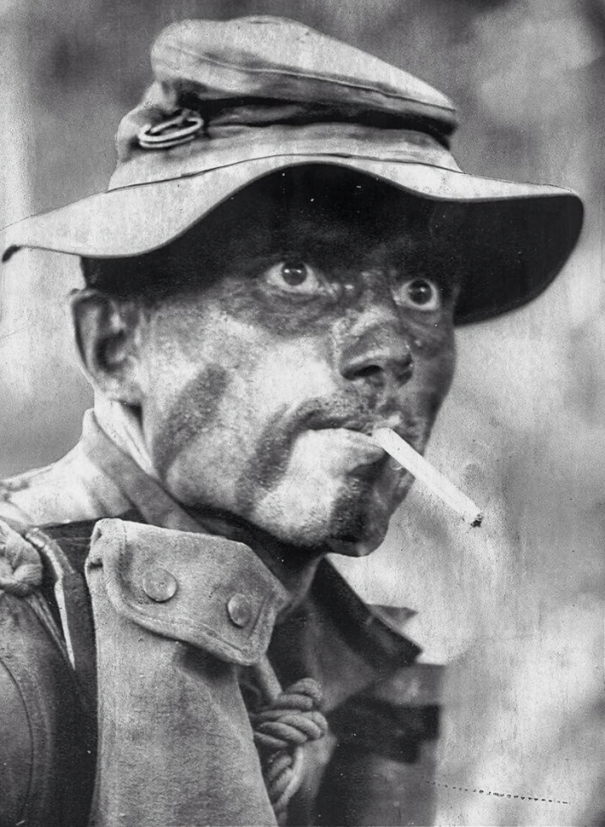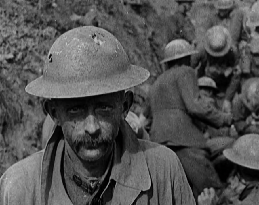 '천 야드의 시선'은 전쟁터에서 살아남은 이들이 공통적으로 보여주는 특징적인 표정을 설명하는 데 사용되는 용어입니다. 극도의 정신적 스트레스를 경험한 뒤, 이들의 눈빛은 먼 곳을 응시하며 텅 비어 있는 듯한 모습을 보입니다. 이는 극한 상황, 특히 전투 중에 경험되는 아드레날린의 폭발적 분비와 그 이후의 심리적 반동 때문에 나타나는 현상입니다. 동공이 확장되고 굳어진 표정은 이들이 얼마나 극심한 상황을 겪었는지를 말해줍니다.