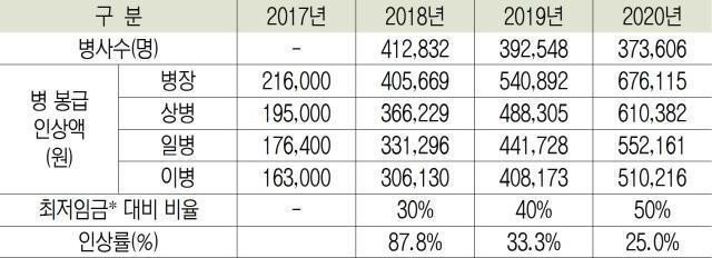 병사 월급은 2020년에 33.3%가 인상됐습니다.