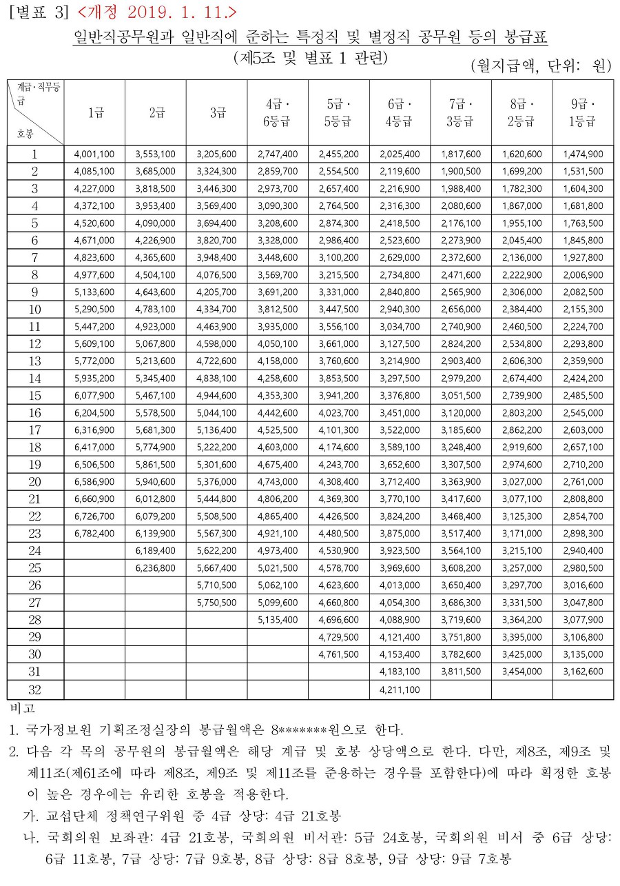 아직 불확실한 내용으로 계산을 할 수는 없고, 평균적으로 1.8% 인상분 만큼을 적용해서 2019 공무원 봉급표를 예상해 봤습니다.