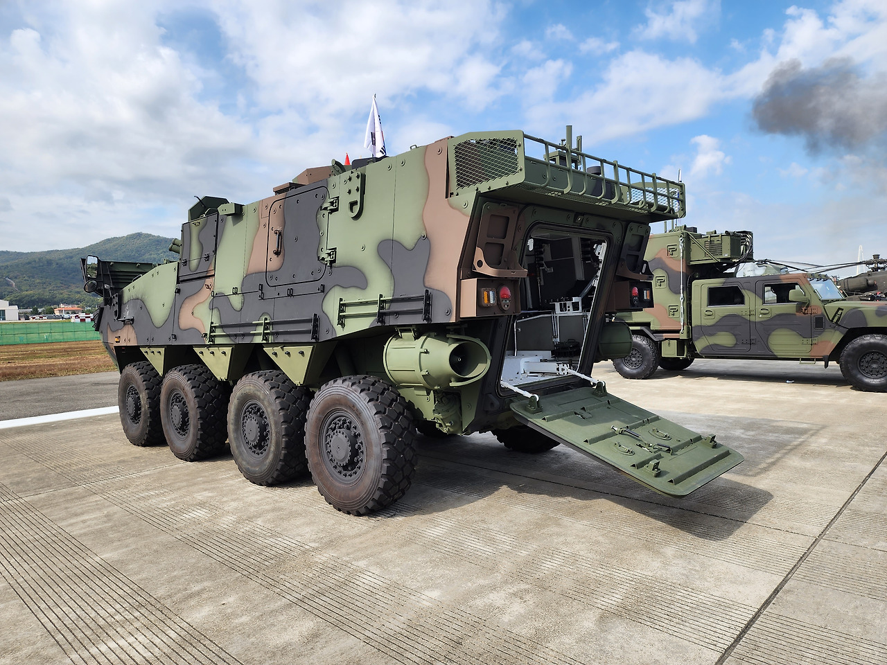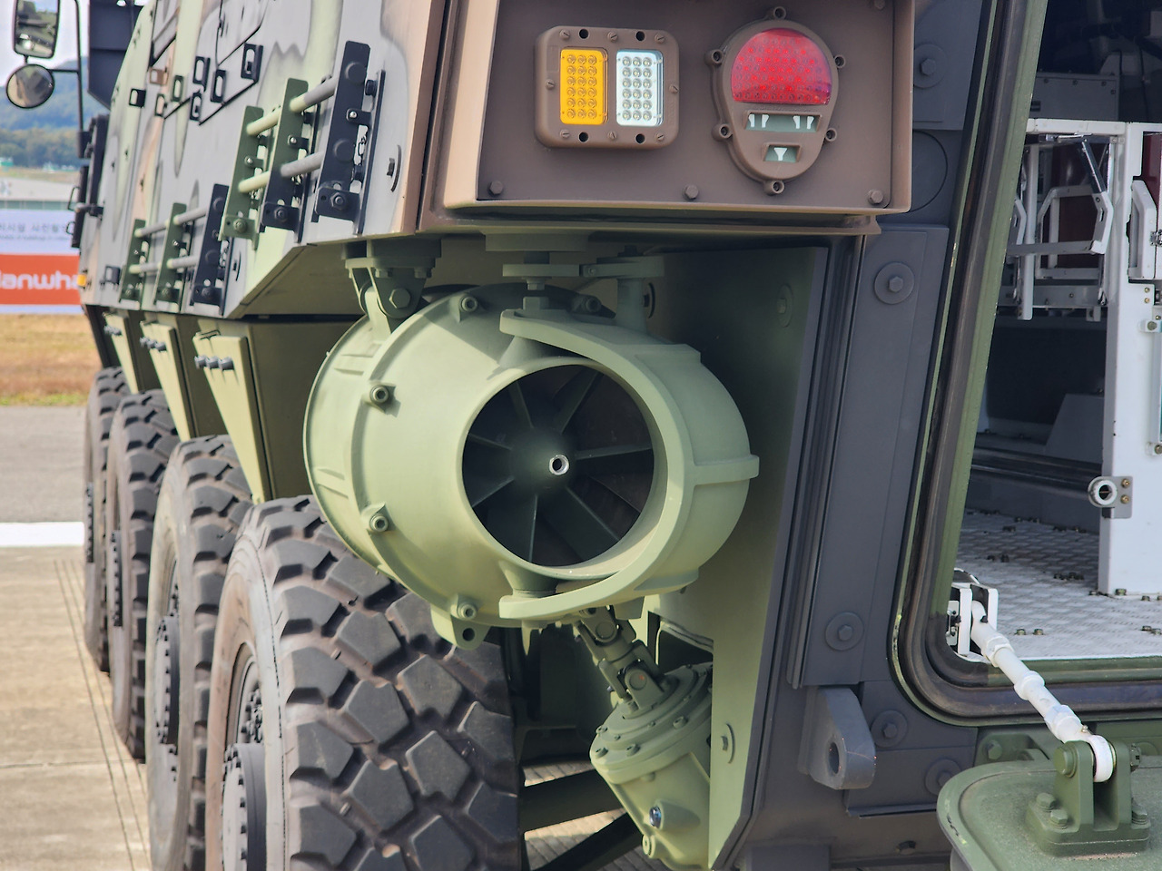이 차량은 ‘차륜형지휘소용차량’으로 K808 차륜형장갑차의 계열형 차량이기 때문에 공용 부품이 많아 개발 및 운영 비용을 절감할 수 있습니다. 또한, 부품 국산화율이 98%에 달해 후속 군수 지원과 사후 관리가 용이합니다.